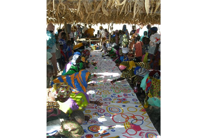 including ella, spent 4 days with the women in this village to get acquainted and to exchange ideas. One of the activities that took place then was a painting workshop with the children, women and men of this village.