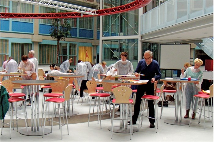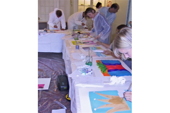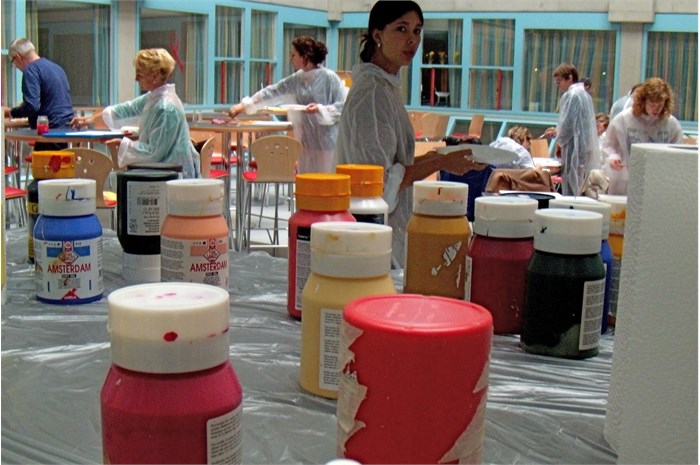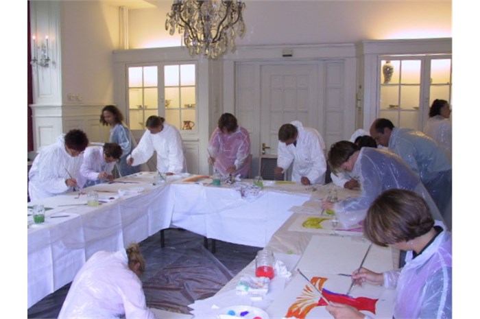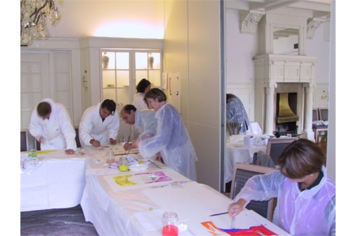 Working together is key in many organisations. A succesful collaboration can only be achieved when people communicate unbiased with each other, respect each other, but above all, understand each others qualities. By painting together, the usual proces is interrupted allowing the creativity to come to the surface. Participants get started with brush and colour to deliver surprising and positive results, which will resonate for a long time in tangible paintings.