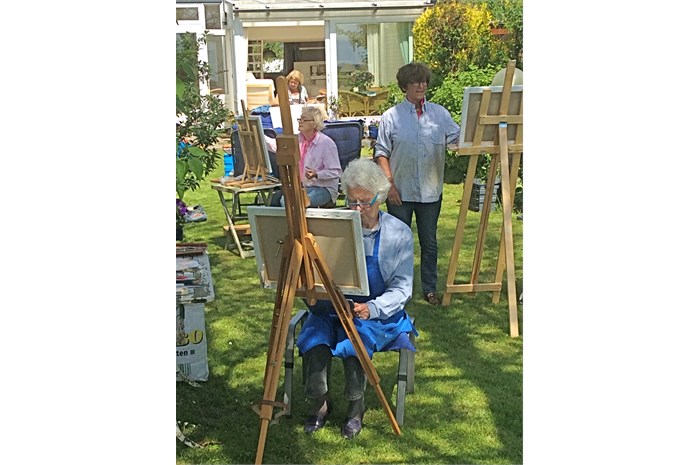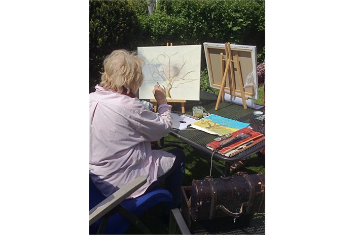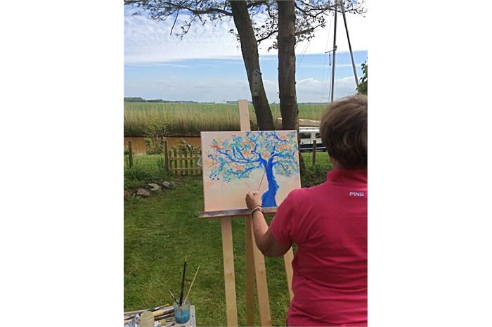 It is possible to follow painting courses at Ella’s. It can be a painting workshop with a particular theme of 1 day or a more extended course of a number of painting days. The course material is focused on doing it yourself and the personal development of each participant. The classes are constructed in such a way that participants can further develop their painting independently at home. Varying experience levels of the participants are taken into consideration at the workshops and the techniques can be applied at all levels. Ella finds it a challenge to get everyone to learn!
