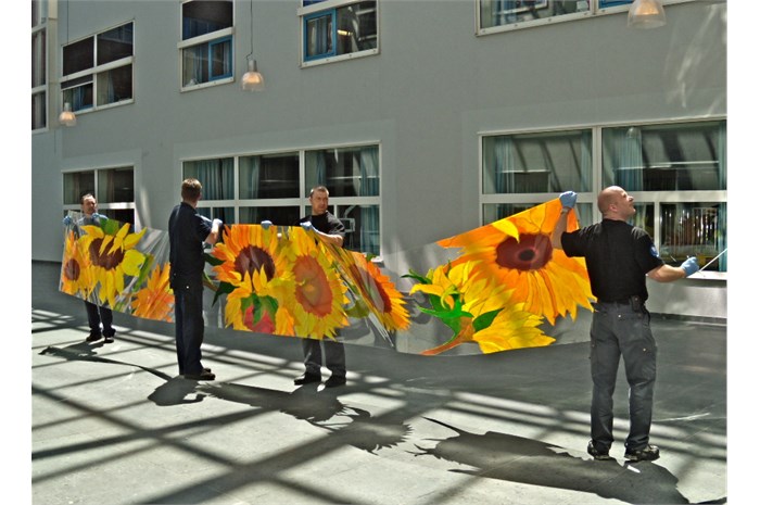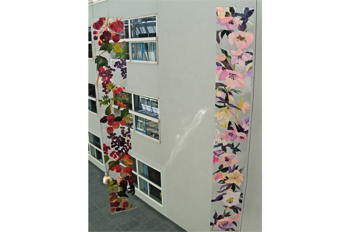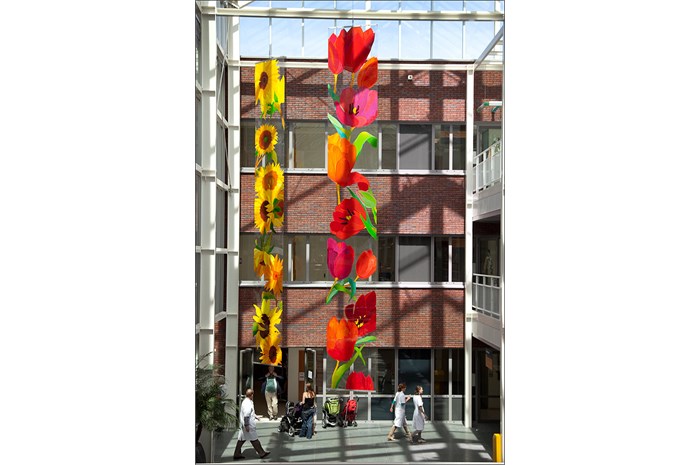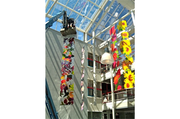 Het kunstwerk bestaat uit 4 grote banieren van zes en een halve meter hoog en een meter breed opgehangen in de centrale ruimte van het ziekenhuis. De banieren zijn als volgt genaamd: