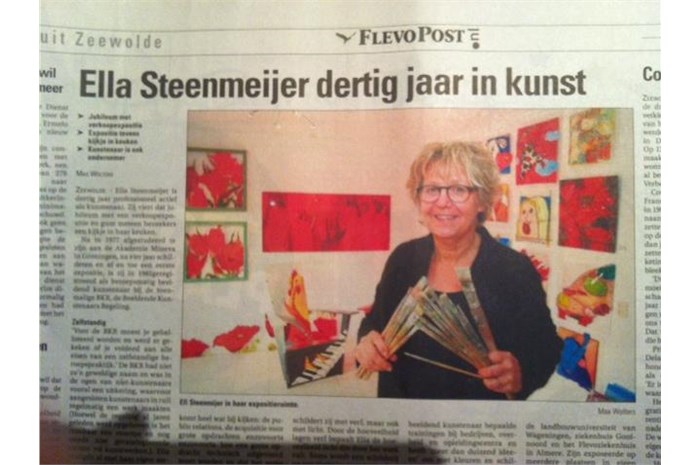 ZEEWOLDE - Ella Steenmeijer is dertig jaar professioneel actief als kunstenaar. Zij viert dat jubileum met een verkoopexpositie en gunt meteen bezoekers een kijkje in haar keuken.
